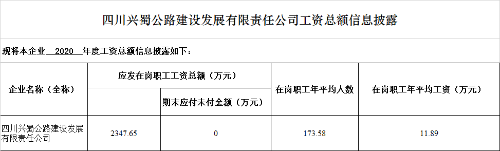 四川兴蜀公路建设发展有限责任公司工资总额信息披露
