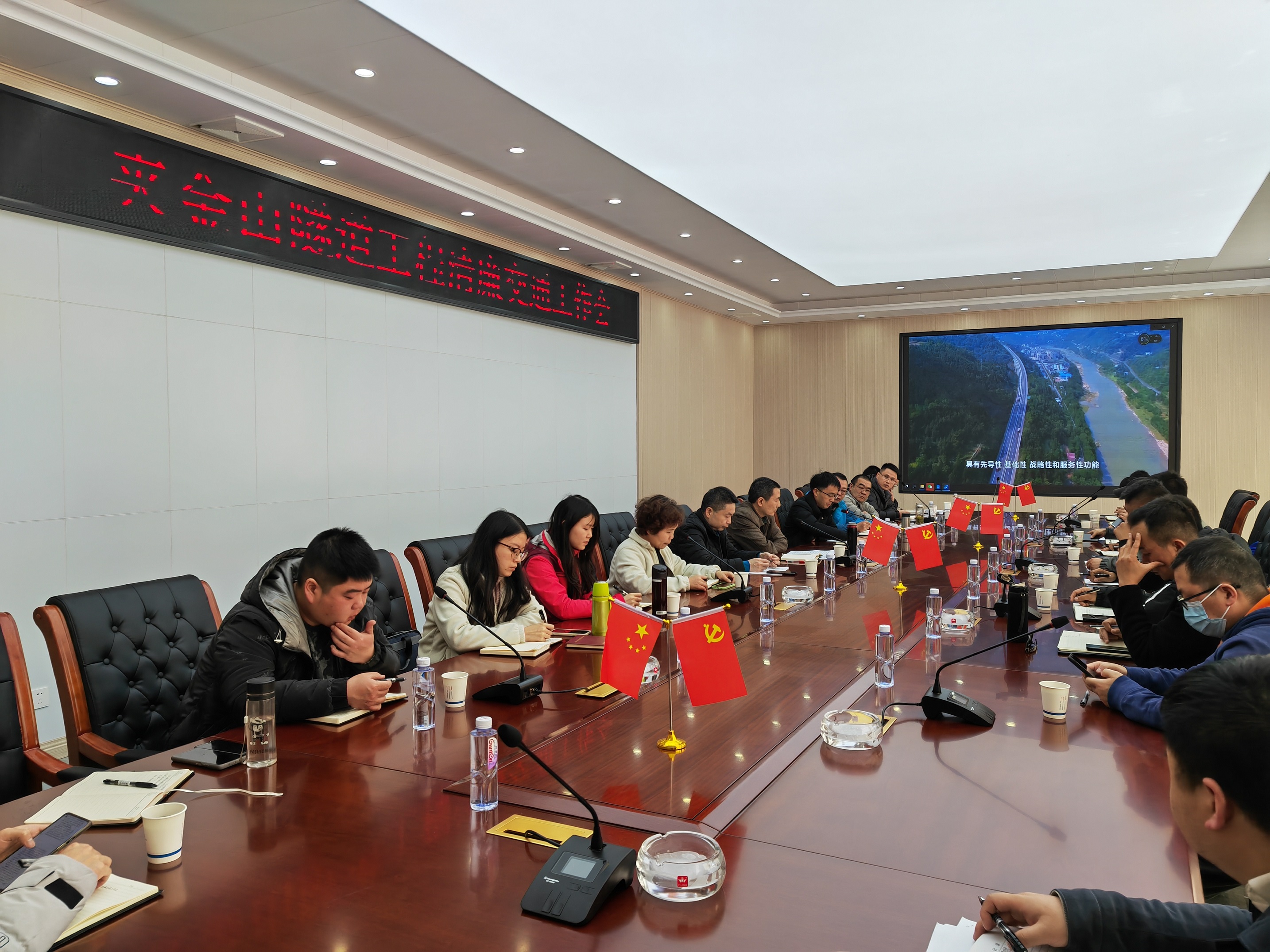 29日下午,在夹金山项目部会议室召开廉政巡察会,公司监事会主席、纪委书记马华卫、纪委委员胡杰、夹金山项目指挥部成员、参建单位负责人及部分员工共35人参加了会议。