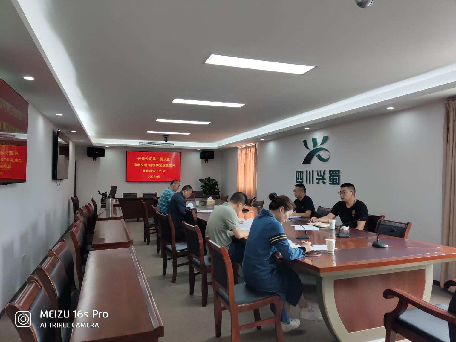 5月20日,兴蜀公司第三党支部召开了“清廉交通”建设和党建暨党风廉政建设宣贯会,会议传达学习习近平总书记在海南考察时重要讲话精神、省委书记王晓晖在省委常委会上的讲话精神及厅、局、公司“清廉交通”建设和党建暨党风廉政建设工作会议精神。会议强调,要以“清廉交通”建设为统领,提高政治站位,坚决贯彻落实公司党委“清廉交通”建设的各项决策部署,进一步深化认识,加强党建与业务工作深度融合,把“清廉交通”建设转化为干事创业的具体举措,真抓实干加快项目建设推进,确保完成年度建设投资目标任务,以优异的成绩迎接党的二十大和省十二次党代会胜利召开。