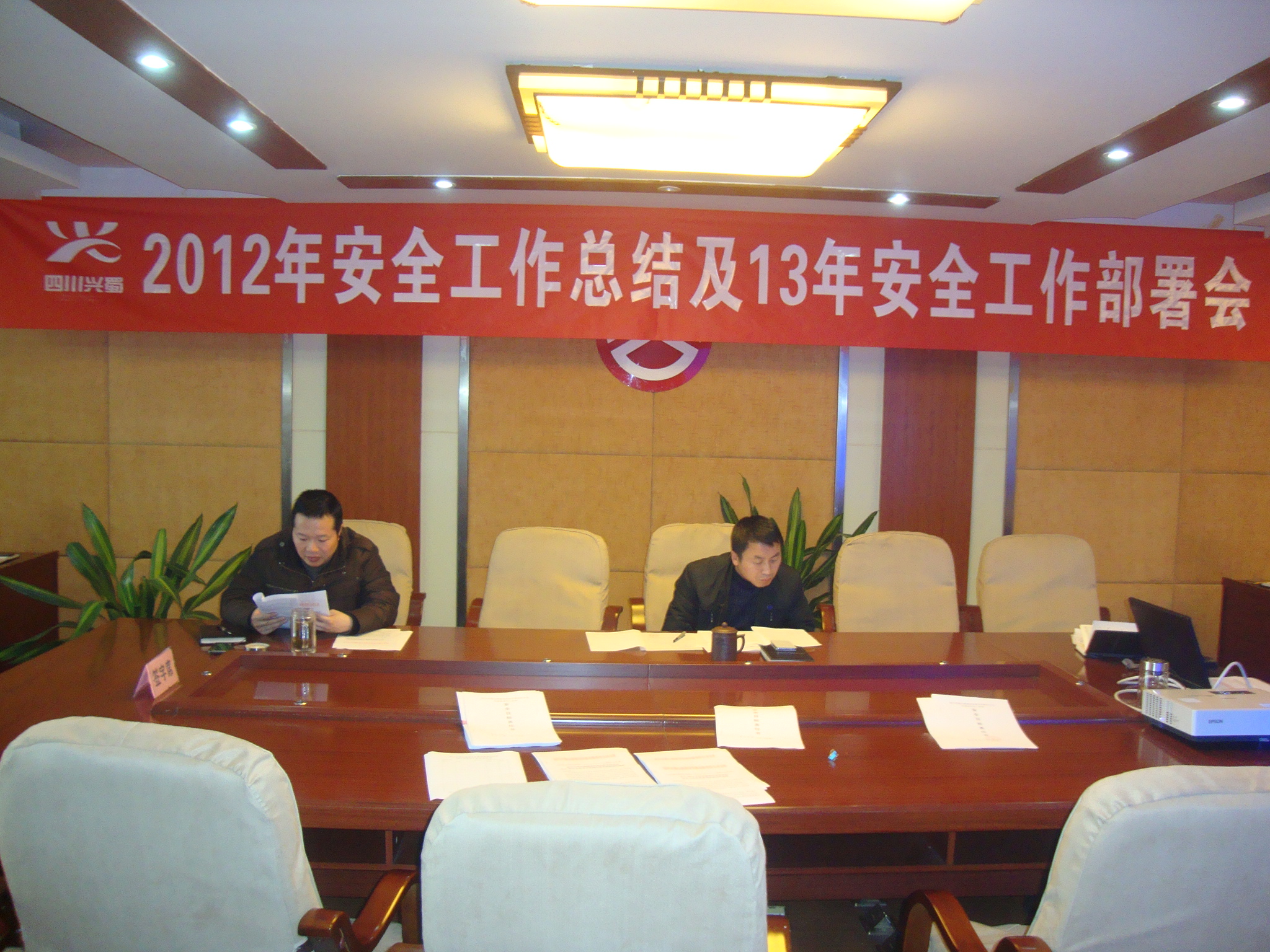 2013年2月22日,兴蜀公司2012年安全工作总结暨2013年度安全工作部署会在成都召开,会议由副总经理刘涛主持,公司各代表处处长、副处长及安全工程师参加了会议。