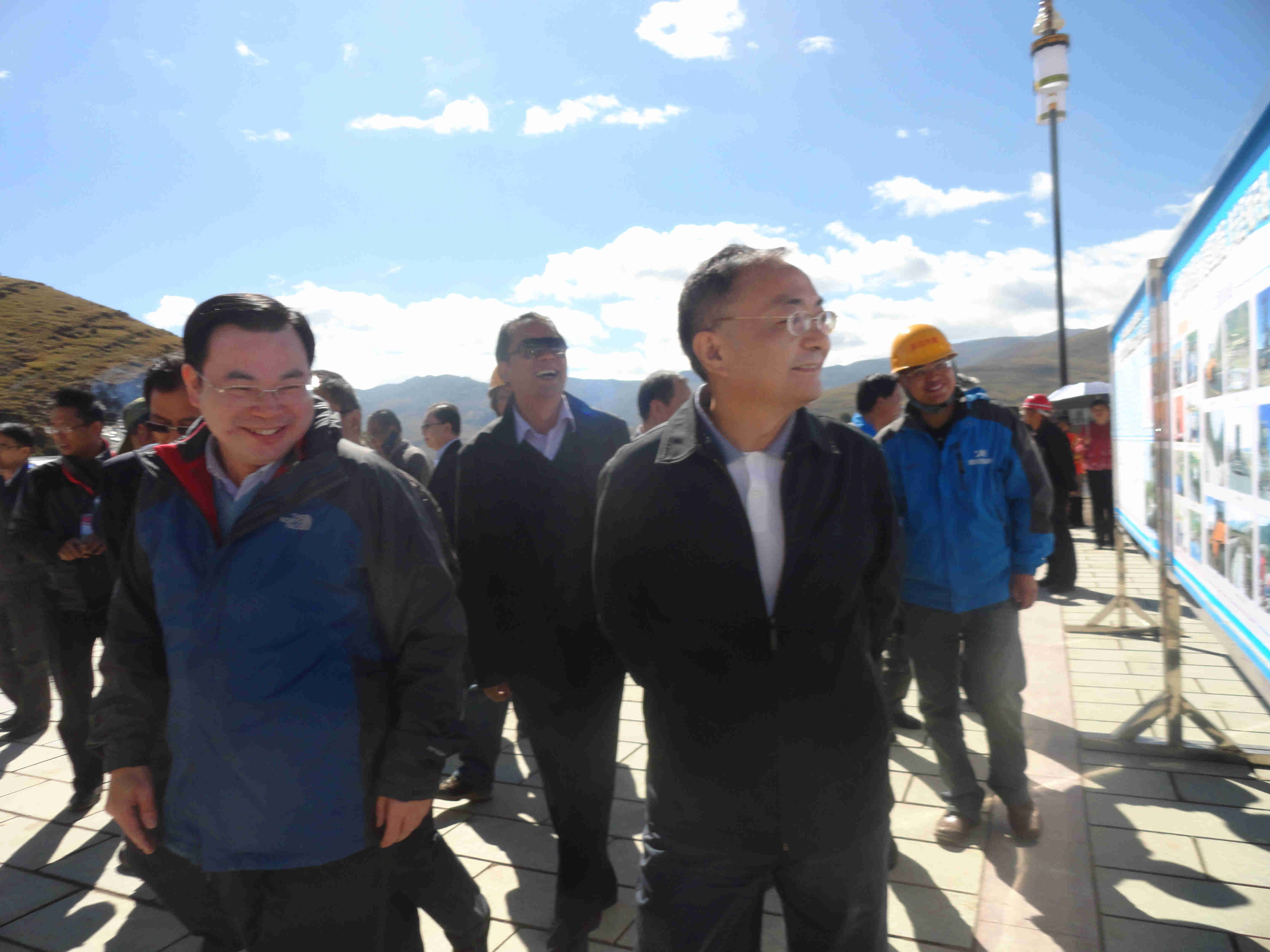 9月16日上午在稻城亚丁机场举行的隆重通航仪式后,四川省委常委、省委农工委主任李昌平在省人大常委会副主任刘道平,甘孜州委书记胡昌升、州长益西达瓦等的陪同下检查了S216/217理亚路改建项目建设情况。