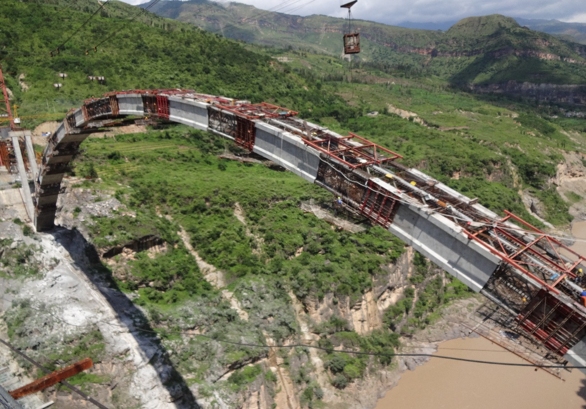 兴蜀公司凉山溜索改桥指挥部布拖项目正进行拱桥外包混凝土施工。拱圈作为拱桥主要承重系统,跨越金沙江垂直高度230米,施工安全风险极大,是整个拱桥施工中的关键工序。项目自进场以来,兴蜀公司作为代建业主,带领全体参建人员团结一致、迎难而上,在确保质量和安全的前提下优化施工流程,加大监管力度,全力拼抢工期,确保项目施工顺利推进。