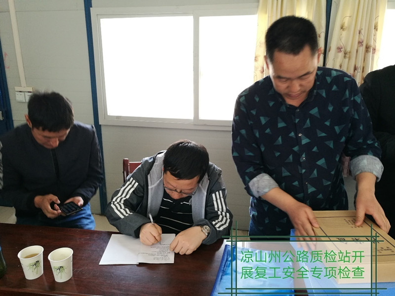 今年是施工最后的冲刺阶段,兴蜀公司凉山溜索改桥指挥部为确保6月顺利完工,春节后迅速组织人员进场,并成立了复工安全检查领导小组,认真组织开展复工前的安全生产检查,确保复工安全作业。重点检查:项目安全生产准入条件及费用落实情况、危险性较大工程专项施工方案及安全技术交底情况、现场安全隐患排查、应急预案情况、工程实体高墩、大型模板支架等危险性较大工程的施工准备情况、机械设备检测验收及三类人员、特种作业人员持证上岗情况。