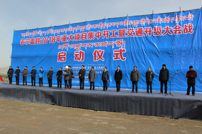 2018年3月20日,阿坝州若尔盖县委县人民政府组织举行2018年重大项目建设暨交通升级大会战集中启动仪式,州、县级领导等共计400余人参加。2018年,若尔盖县拟实施项目126个,计划总投资25.09亿元,其中交通项目10个,占总投资40%。