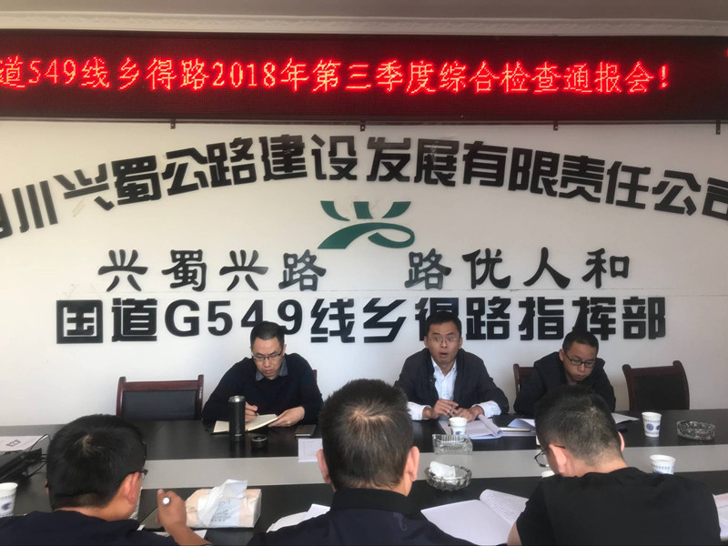 9月24日,兴蜀公司乡得路指挥部对第三季度全线施工开展情况进行了综合检查,重点涉及项目各标段施工进度管理、质量安全管理行为、试验检测及现场施工安全等方面,并组织召开了检查通报大会,结合检查结果认真剖析了目前存在的问题,提出了解决方案,安排部署了第四季度建设管理任务,要求各参建单位周密部署,抢抓9、10月黄金施工时间,确保按期完成2018年生产目标任务。
