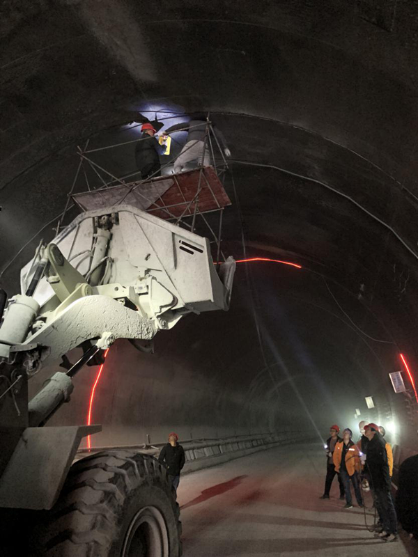 11月18日,甘孜州质监局、兴蜀公司桑然路指挥部、JL1总监办、SY1监理试验室、LJ3标项目部及第三方检测单位组成联合交验组对桑然路马熊沟隧道开展交工验收检测。交验组运用地质雷达法、超声回弹法等方式对马熊沟隧道二衬厚度、强度、大面平整度、隧道宽度、净空及外观等指标进行综合检测,检测结果工程质量全部合格。指挥部下一步将切实抓好隧道装饰及机电工程安装工作,科学调整进度计划,狠抓工程质量和安全,对各参建单位进行年度目标考核,优质高效推进剩余工程,全力冲刺2018年底通车目标。