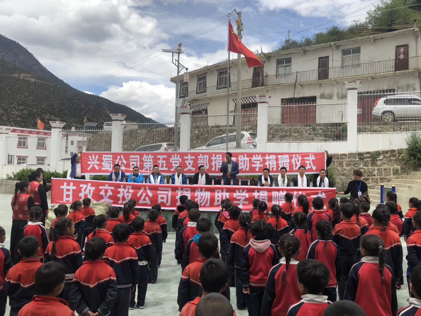 为回馈社会,2019年5月24日兴蜀公司第五党支部带领G549线乡得路各参建单位为项目所在地定波乡小学和正斗乡二完小学踊跃捐赠了200套校服,为大山深处的儿童们送去了关爱和温暖,并带去了节日祝福。