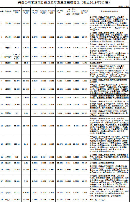 兴蜀公司管理项目投资及形象进度完成情况(截至2019年5月底)