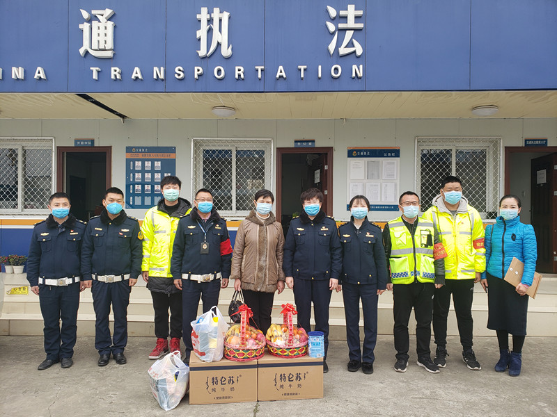 2月20日,兴蜀公司副总经理刘臻代表公司党委,赴G4215蓉遵高速路口看望慰问坚守疫情防控一线的厅疫情防控青年党员服务队,送去了牛奶、水果、干粮等慰问品,并带去了公司领导的关心问候。高速公路管理局(总队)第四支队副支队长唐娟 ,第四支队八大队队长董天理、副队长苏涛陪同。