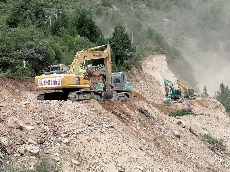 近日,由于阿坝州小金县抚边河上游普降暴雨,兴蜀公司代建的省道217线卓小路K101+750-900段路基外侧挡土墙出现局部垮塌。该段是小金县通向马尔康的必经应急通道,联系着沿线7个乡镇群众的出行,建设指挥部高度重视,第一时间将情况上报州、县相关部门。庚即便组织设计、监理、施工单位相关技术负责人对现场进场详细查看、分析和评估,启动一系列地灾防治应急措施:一是采用锥形桶、警示带封闭左侧半幅道路;二是在道路两侧设置醒目的安全警示标牌;三是在外侧挡土墙和内侧水沟上设置观测点(观测沉降、位移);四是在前中后段分别设置专职安全警戒人员。6月27日,该处路基沉降进一步发展,建设指挥部再次组织设计、监理、施工单位相关技术人员对现场进行勘察,并决定采取全面封闭交通的方式断道施工,7月5日,兴蜀公司卓小路K101+750-900段应急通道顺利抢通,进一步方便了沿线7个乡镇百姓出行。