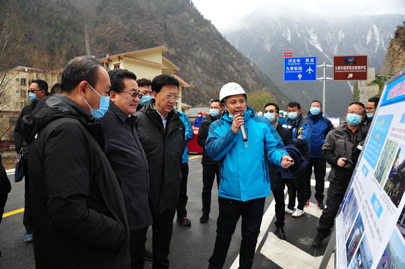 12月17日,四川省委副书记邓小刚到公司代建的川九路项目调研慰问。省交通运输厅厅长罗佳明,阿坝州委书记刘坪,阿坝州委常委、九寨沟县委书记罗智波、阿坝州交通局局长龚明、阿坝州公路管理局局长益英、兴蜀公司党委书记、董事长、总经理袁泉,阿坝州各职能部门、九寨沟县政府等相关部门负责人陪同。
