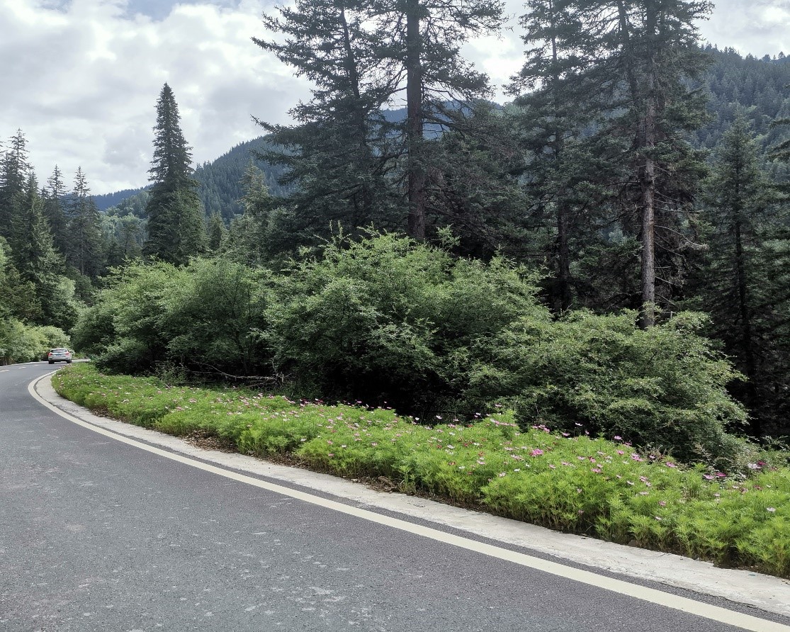 今年以来漳大路项目进入收尾工作,主要是完善绿化工程施工。本项目绿化工程采取因地制宜的原则宜花则花,宜树则树,宜草则草,以见缝插绿的方式,大力实施增绿添花工程,在项目区有限的条件内营造绿化及花卉景观。将原设计沿线绿化中高山松、高山柳、沙棘、披碱草、紫花苜蓿等绿化植物取消,调整为木春菊、波斯菊、百日菊、孔雀草、垂穗披碱草、老芒麦、早熟禾等。漳大路指挥部本着努力提升旅游道路的对外形象,按照在“增绿、添花、提质”的工作思路,点、线、面结合,以道路出入口、道路临边绿化为点,以漳大路段为线,以着力打造路段种植花卉为面,全力提升施工效果。当前绿化效果已初步显现,预计在9月初开展绿化工程交工验收。
