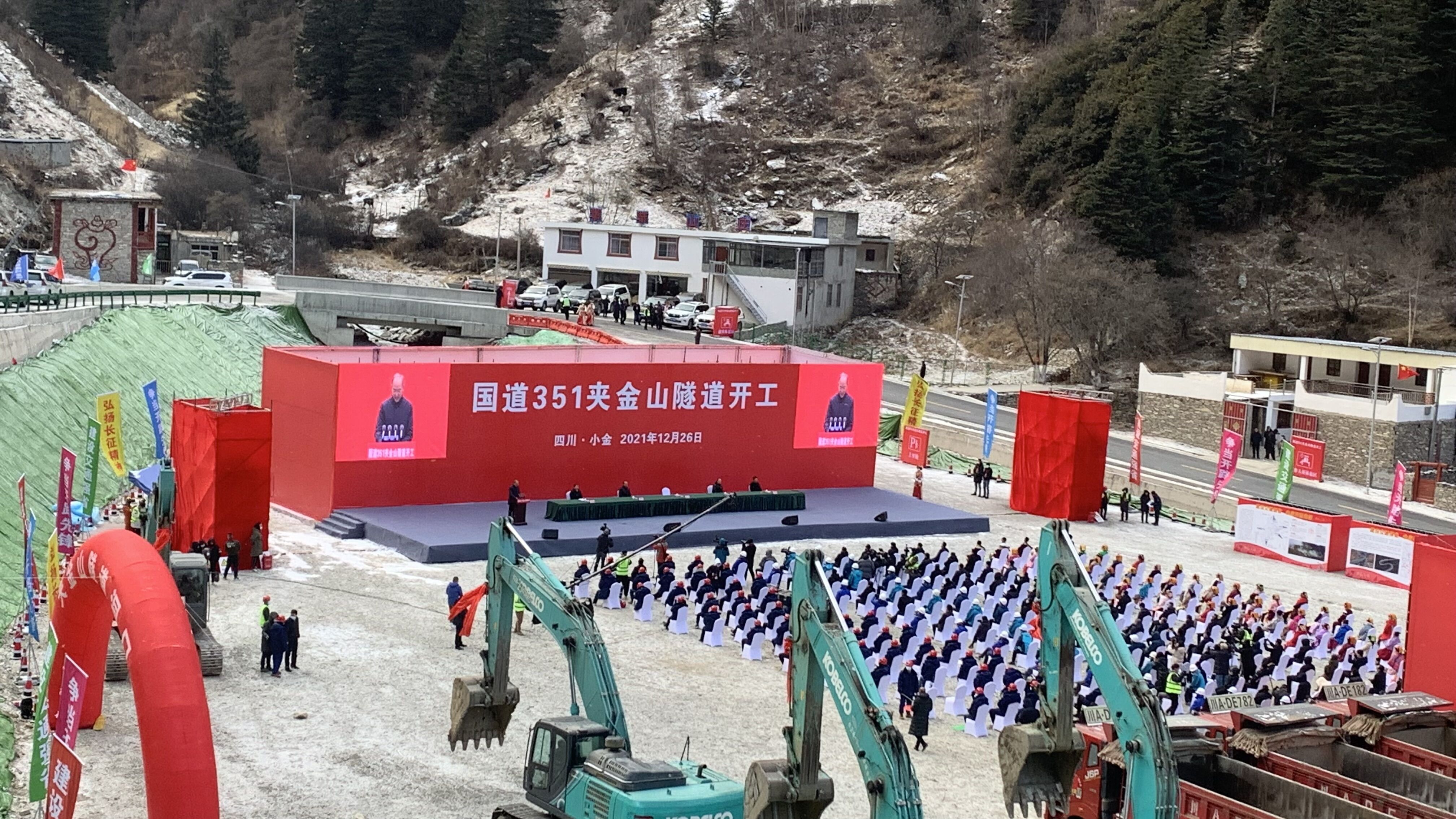 国道351线夹金山隧道工程项目起于雅安市宝兴县硗碛乡藏族乡波日沟,止于阿坝州小金县达维镇唐家山。路线全长10.07km,其中夹金山隧道长9.35km,平导长度9.364km,采用二级公路标准建设,设计速度60km/h,路基宽度为10m,项目预算18.4亿元。项目平导采用TBM全断面施工与传统钻爆法开挖相结合方式,将建设工期由6年缩短至4年。该工程为省委、省人民政府“我为群众办实事”民生工程,也被交通运输部纳入公路“十四五”发展规划。项目建成后,通行时间将由原来的1个小时缩短至10分钟,项目的建设将改善宝兴县和小金县区域交通条件,基本实现冬季无管制畅行,提升地震地质灾害频发地区生命通道保障能力,促进沿线特色红色旅游资源开发,巩固拓展脱贫攻坚成果,支撑革命老区振兴发展。