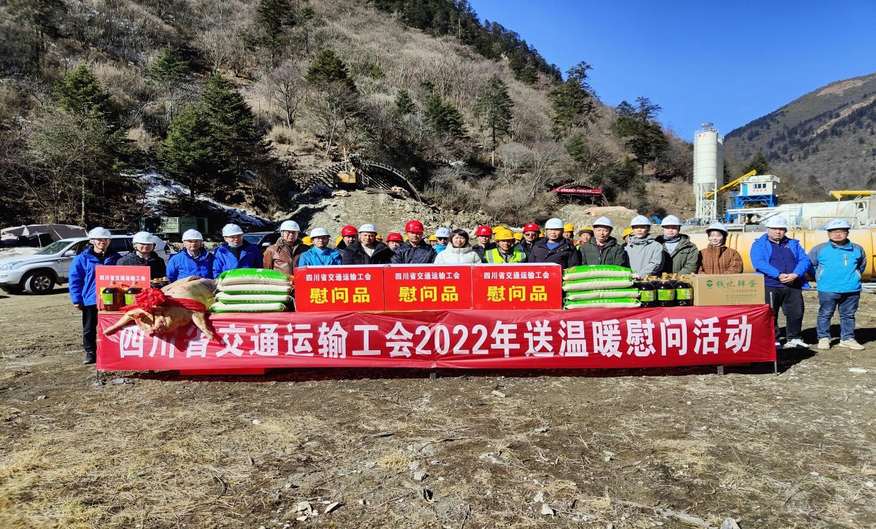 2022年1月18日,省交通运输工会主席唐蓉华一行赴国道351夹金山隧道工程项目开展“送温暖”慰问活动,看望慰问一线建设者,省交通运输工会主席一行在夹金山隧道进口端对一线建设者发放慰问品,并嘱咐大家一是在工作中要注意身体健康,做好防寒保暖工作;二是要以人为本,切实关心施工人员生产生活,营造良好的施工环境;三是提前祝夹金山隧道工程项目一线建设者们春节愉快。兴蜀公司党委书记董事长袁泉、副总经理唐元华陪同慰问。