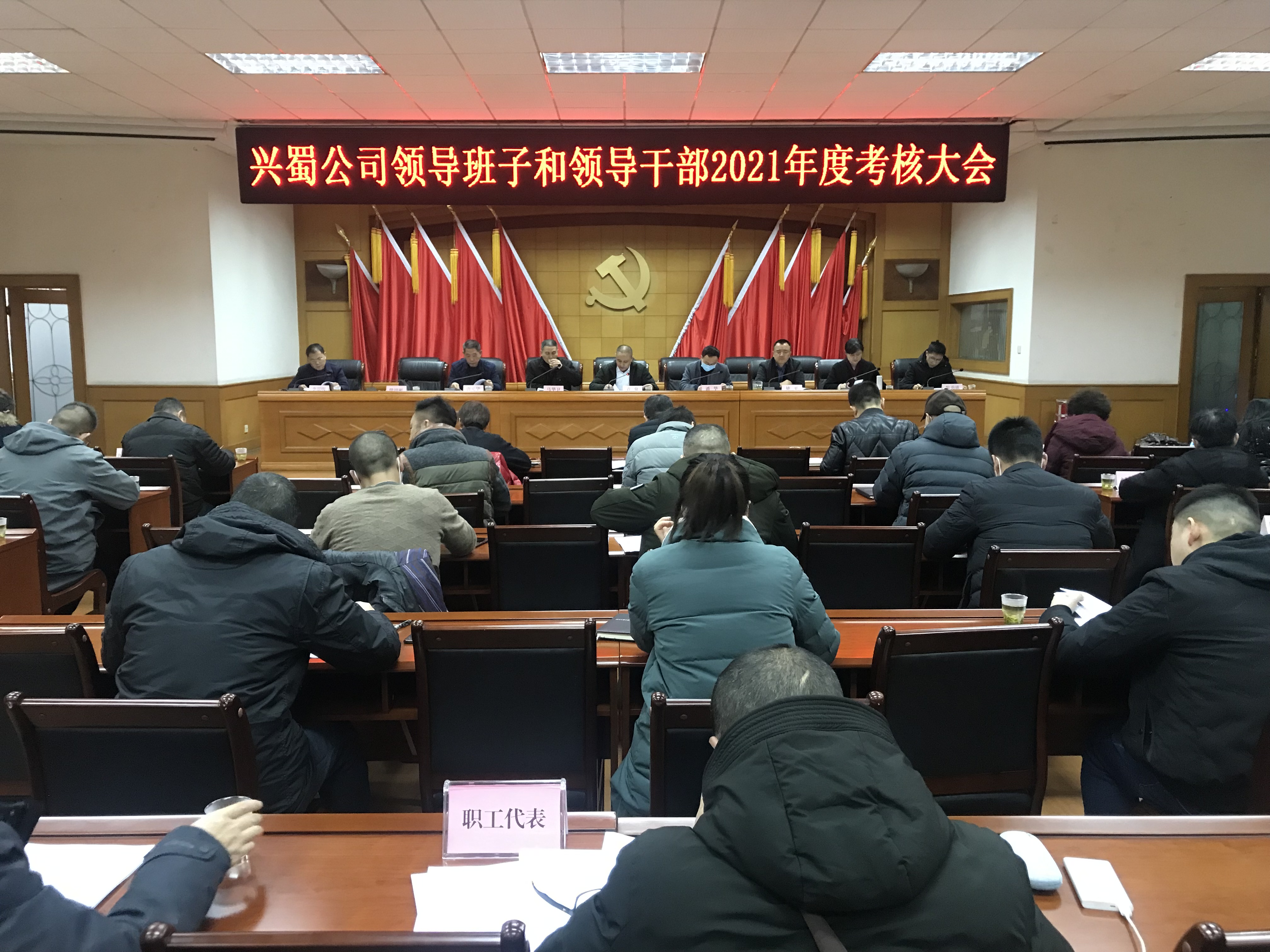 1月26日,兴蜀公司召开领导班子和领导干部2021年度考核大会,会议由党委书记、董事长袁泉主持,袁泉董事长代表公司领导班子作2021年度工作总结,公司班子成员分别述职述廉。会议进行了民主测评和民主评议。公司领导干部、中层干部、职工代表参加了会议。