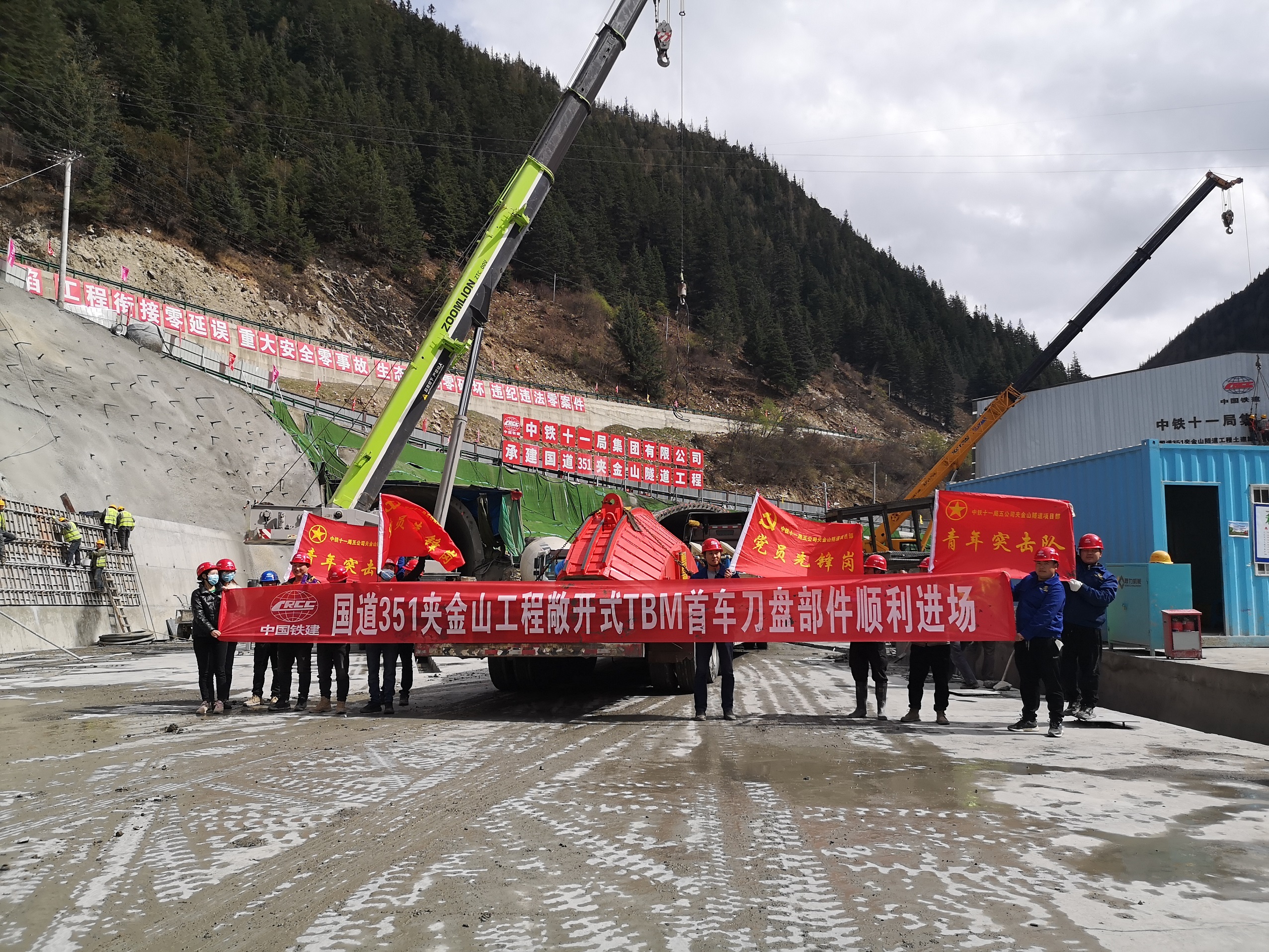 兴蜀公司代建管理的G351夹金山隧道“夹金山号”TBM设备于4月16日下线后,立即开展拆卸、装运工作。为确保顺利到达施工现场,各相关单位建立联络联动机制,前期已开展了路线勘察、地质病害治理、桥梁荷载检测、运输方案论证、超限运输车辆通行证办理、临时交通管制发布、疫情防控等相关工作。此次运输分为大件运输和普通货运,大件运输通行证已全部办理完成,将分三批次开展超限运输,分别为中心块(刀盘)、主驱动(车货总重198T)、主梁一、二和后支撑架。首次运输的普通货物刀盘边块和步进装置已于24日凌晨到达夹金山隧道出口小金端施工现场,其余设备将分期分批运输至工地,计划5月中旬全部运输到场。