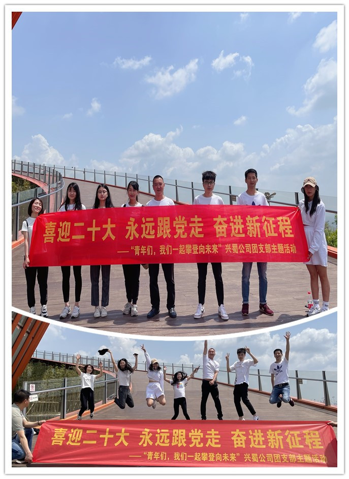 近日,为迎接党的二十大和建团100周年,弘扬“爱国、进步、民主、科学”的五四精神,倡导青年员工健康运动的生活方式,引导青年员工以深厚的爱国情怀为根基、以蓬勃的创新活力为动力、以坚韧的实干作风为抓手,在新时代为祖国青春之事业勇担中国青年的时代使命,以更加健康饱满的精神状态冲在一线、守在一线、干在一线。兴蜀公司团支部组织本部青年员工赴龙泉山城市森林公园开展“喜迎二十大 永远跟党走 奋进新征程”主题教育实践活动—“青年们,我们一起攀登向未来”。