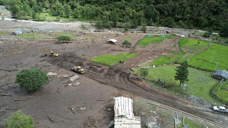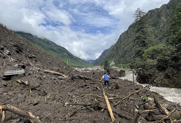 2023年7月7日凌晨,国道549线九石路TJ2-B标,TJ3标项目所在地九龙县雪洼龙镇,遭遇强降雨,暴雨中夹杂着冰雹,导致道路沿线突发大面积山体滑坡,并伴随泥石流。三处边坡垮塌,四处冲沟滑坡及泥石流塌方约50000m3对部分房屋冲毁,河道形成挤压,路基和县、乡、村道多处损毁严重,导致麻窝和雪洼两村1000余人被困、民房损毁、通讯中断。