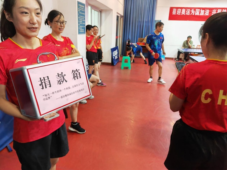 比赛间歇,参赛选手们和现场观众积极奉献爱心,捐赠“爱加餐助成长”助学发展项目,为山区小学生募集了317份牛奶鸡蛋。