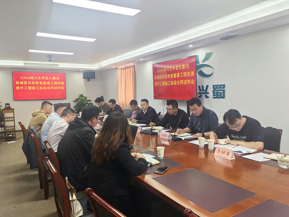 10月28日,兴蜀公司组织召开G544线川九路完善提升工程施工标段合同谈判会。项目业主阿坝州公路管理局、监理单位四川省公路院工程监理有限公司、施工单位四川川交路桥有限责任公司参会。