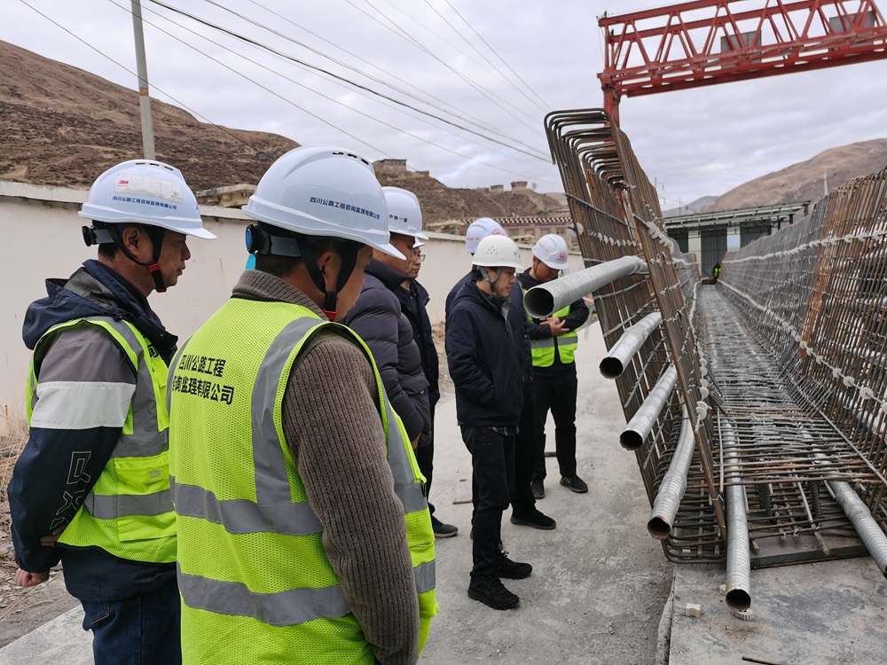 在色翁路检查督导期间,潘华总经理一行先后实地查看了甲根达2号中桥现浇梁、2号预制梁厂,新老路面扩宽段、旭日隧道、曼堂古隧道、霍西隧道等项目控制性工程,听取了各参建单位关于项目建设、用地要件办理、技术保障及安全环保管理等方面的工作汇报。