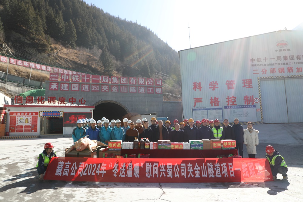 12月26日,藏高公司党委书记、董事长韩瑀萱带队赴G351夹金山隧道调研项目建设情况,并开展“冬送温暖”慰问活动。
