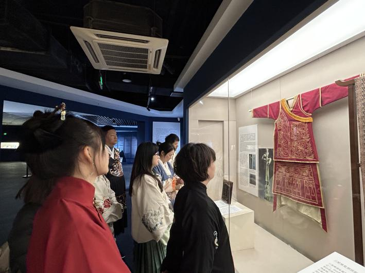 穿越千年,感受智慧流淌。在成都蜀锦织绣博物馆,青年们身着汉服,体会蜀锦蜀绣的独特文化魅力,品味神秘的古蜀文化想象、汉代的吉祥隽语、唐宋的胡风交融、明清的繁复华美,领略了不同历史时期蜀锦和蜀绣的风采。