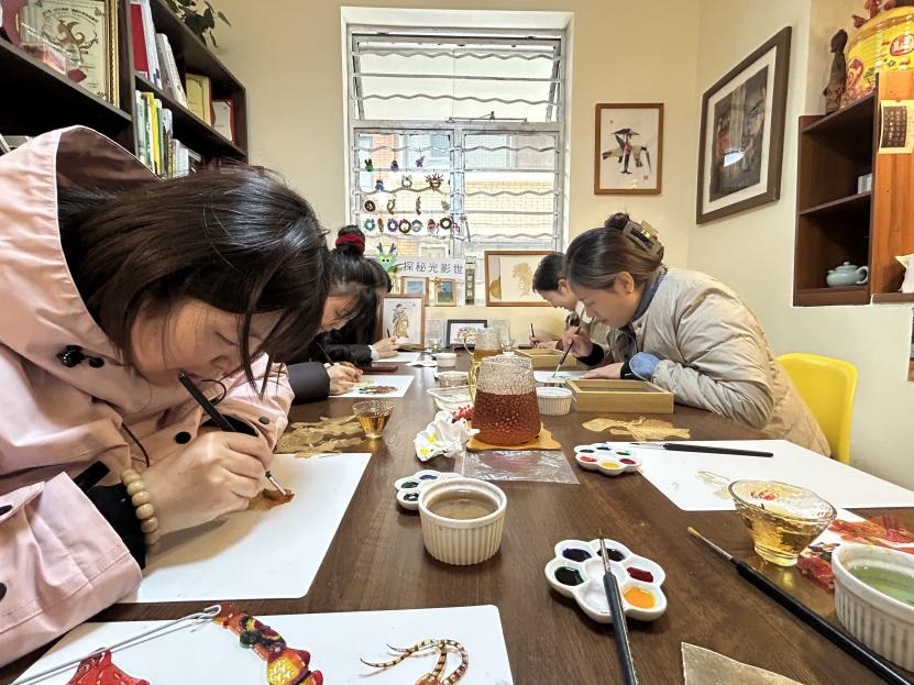 制作皮影,接受非遗熏陶。皮影戏是中国民间传统艺术,它集说、唱、演为一体,具有深厚的艺术内涵和文化价值,也是本次活动的重头戏。在皮影制作工作室活动中,专业老师先为大家奉上了一堂丰富的皮影知识宣讲,增进了大家对皮影的历史渊源和制作工艺的了解。进入实践环节,选好图案后,在老师的指导下,青年们手持雕刻刀,认真刻画人物线条,再用色彩丰富的颜料赋予皮影鲜活的生命,每一个转折都刻画出对工艺的执着,每一个细节都凝聚着对传统的尊重。最后用细牛皮条搓成线将皮影人物各个关节部分的“骨 眼”缀结,一件完整的皮影人即告完成。“学习皮影,不仅仅是学习一门技艺,更是深刻体会到一种精神,严谨认真、精益求精、追求完美的工匠精神。”一位参与活动的青年干部在完成自己的皮影作品后感慨道。