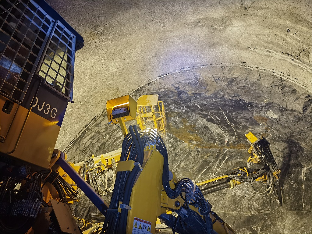 近日,兴蜀公司代建国道549线九石路贡嘎隧道TJ2-B标段积极引进全电脑三臂凿岩台车开展隧道开挖施工,专业有序展开爆破孔钻进、锚杆孔钻进、掌子面排险等一系列施工作业,创下月掘进140米的新记录,加速推进九石路建设。贡嘎隧道主洞全长9.961千米,海拔高度3115米至3279米,为高海拔隧道,地质极其复杂,隧址区属高山构造剥蚀类型,存在岩爆、大变形、突水等地质灾害,施工难度大、安全风险高,是全线控制性工程。为进一步提高施工效率,九石路指挥部全面引进全电脑三臂凿岩台车进行施工,3条钻臂同时长进尺,不仅能保证大进尺的施工速度要求,同时质量控制效果好,爆破后围岩整齐,有效地解决了之前进尺短、施工效率低、人工劳动强度大、作业人员安全等问题。此次项目上机械化推广为贡嘎隧道施工提速迈出了重要的一步。