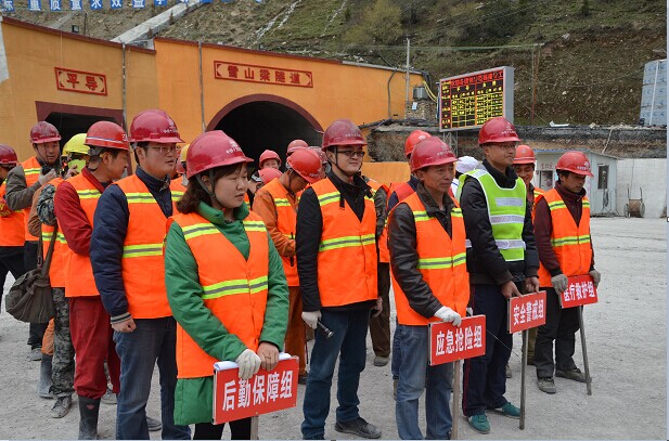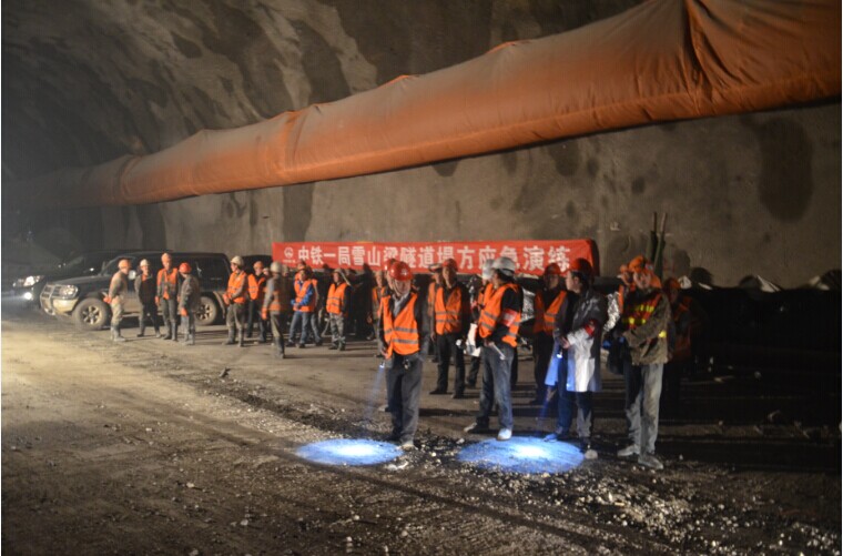 为提高全体参建人员的安全意识,强化项目的安全应急处置水平,2014年5月19日至20日,结合雪山梁隧道工程特点,分别在隧道A、B标段有针对性地开展了隧道关门坍塌,涌水、突泥等突发事件应急演练。