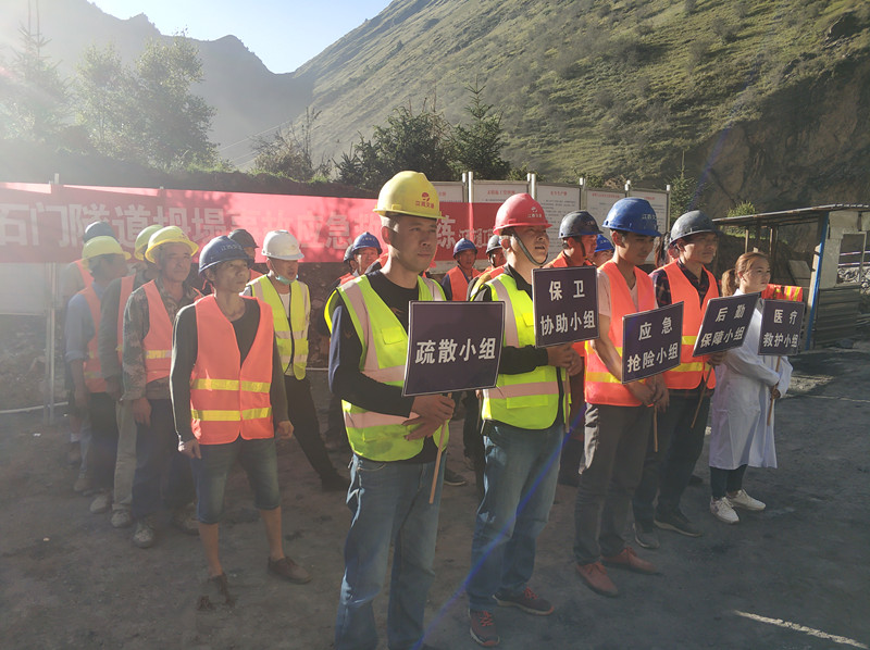 为有效防范节假日期间施工现场的重大安全风险,9月8日,迭玛路指挥部在DM1标组织开展“保安全、迎大庆”隧道坍塌应急救援实战演练。