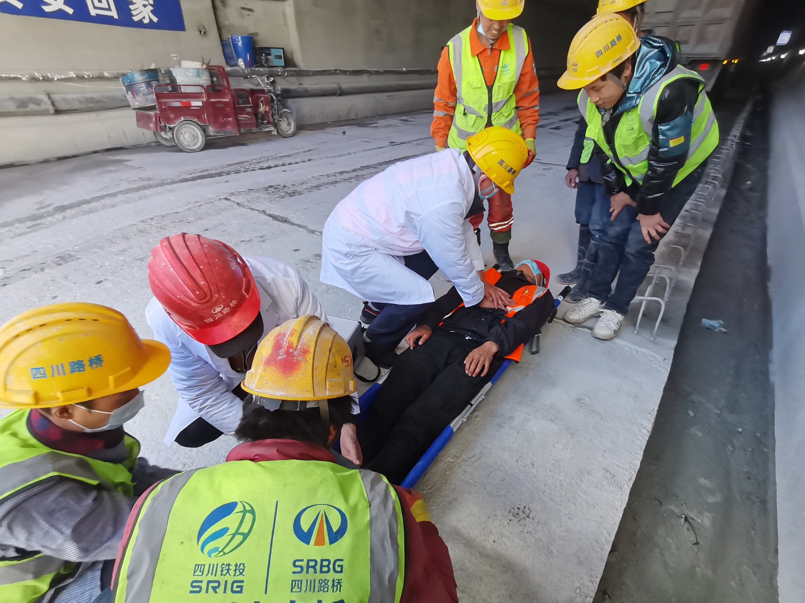 为检验参建人员应对突发事故的能力,促进应急救援体系协调配合能力。11月16日,兴蜀公司代建国道549线九石路指挥部组织JL2总监办、TJ3标项目部组织开展2021年隧道火灾事故应急救援演练活动。此次演练模拟木耳瓜山隧道防水板台车由于电焊火花引发附近防水板着火,产生较大浓烟,作业人员4人中发生1人被困窒息晕倒、1人被火轻度烧伤的火灾事故。针对此情况,项目部相关人员按照应急预案程序及时将险情逐级上报,指挥部立即启动应急救援预案,首先关闭动力电源,启用应急照明,联系医院请求救援,及时控制火灾,营救受困人员,演练分设了应急抢险组、医疗救护组、应急疏散组等共计5个小组,开展了火场疏散逃生有效方式、心肺复苏应急救援技能及干粉灭火器正确使用实操示范、体验。整个演练过程反应迅速、严谨有序,分工明确,达到最短时间内扑灭火情,最快时间疏散人员全部撤离、伤员及时救治,圆满完成了演练活动,达到了预期成效。