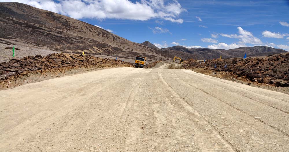 兴蜀公司亚赤路改建工程S 1标段于2014年5月15日在海拔4600米无名山顺利完成了路基填方试验段的施工铺筑。