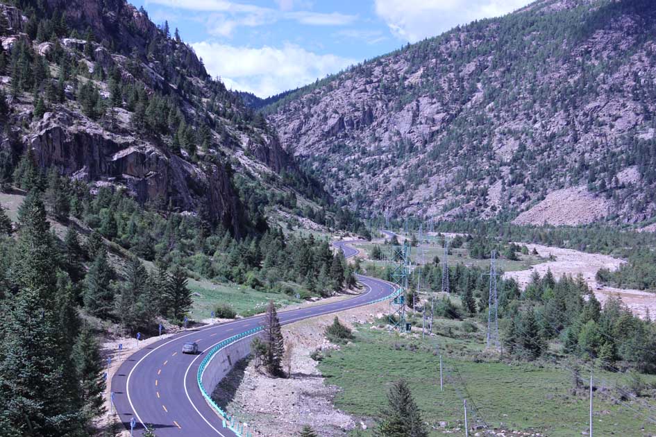 S217/216线理塘至稻城亚丁公路位于甘孜州理塘县及稻城县境内,路线起于理塘县东,与G318线相接,从理塘县经桑堆至稻城县香格里拉镇,是通往“金沙江流域大香格里拉核心区域——亚丁”的必经之路。路线全长222.466km,采用二级、三级公路技术标准。二级公路标准路段,路基宽度10m,路面宽度7.0m,设计行车速度40-60km/h;三级公路标准路段,路基宽度8.5m,路面宽度7.0m,设计行车速度30-40km/h。路面采用沥青混凝土,厚度为4cm+5cm。