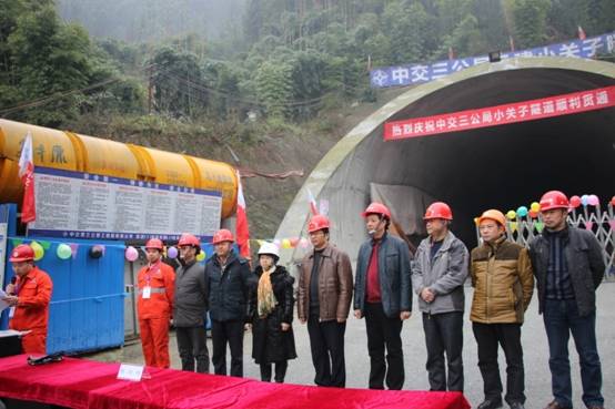 由兴蜀公司代建的雅安灾后恢复重建项目小关子隧道于2014年12月26日上午11点顺利贯通,有关单位领导和人员参加了贯通仪式。小关子隧道是G351全线第一座贯通的隧道,隧道全长825米,合同造价3286万元,隧道以四、五级围岩为主。从2014年4月1日进洞,在不到9个月的时间,全体参建者们克服了隧道开挖过程中岩体破碎、裂隙发育,围岩自稳能力差等重重困难实现了隧道贯通,标志着G351线雅安灾后恢复重建工程取得了阶段性成果。