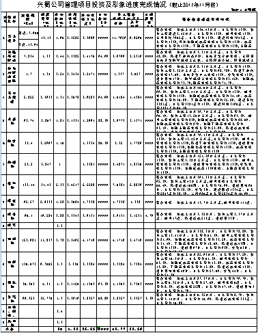 兴蜀公司管理项目投资及形象进度完成情况(截止2017年11月底)