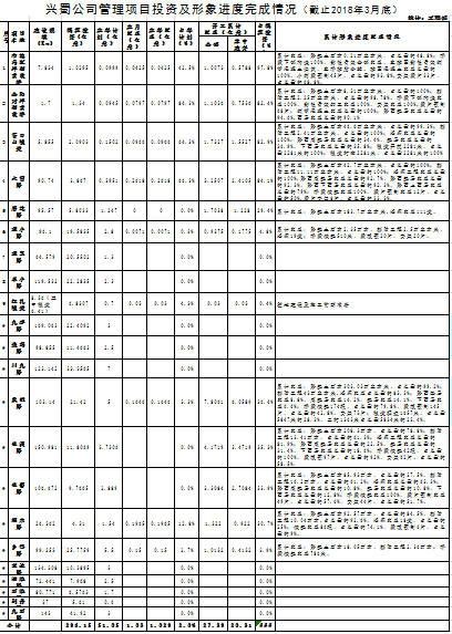 兴蜀公司管理项目投资及形象进度完成情况(截止2018年3月底)