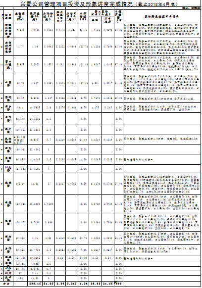 兴蜀公司管理项目投资及形象进度完成情况(截至2018年4月底)