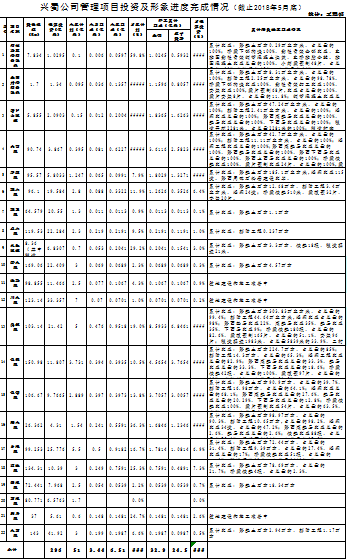兴蜀公司管理项目投资及形象进度完成情况(截止2018年5月底)