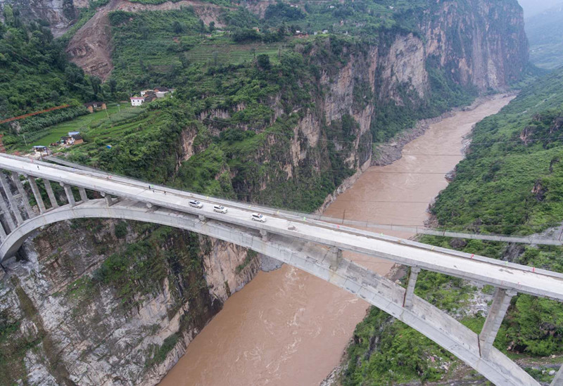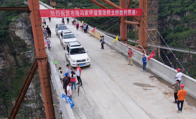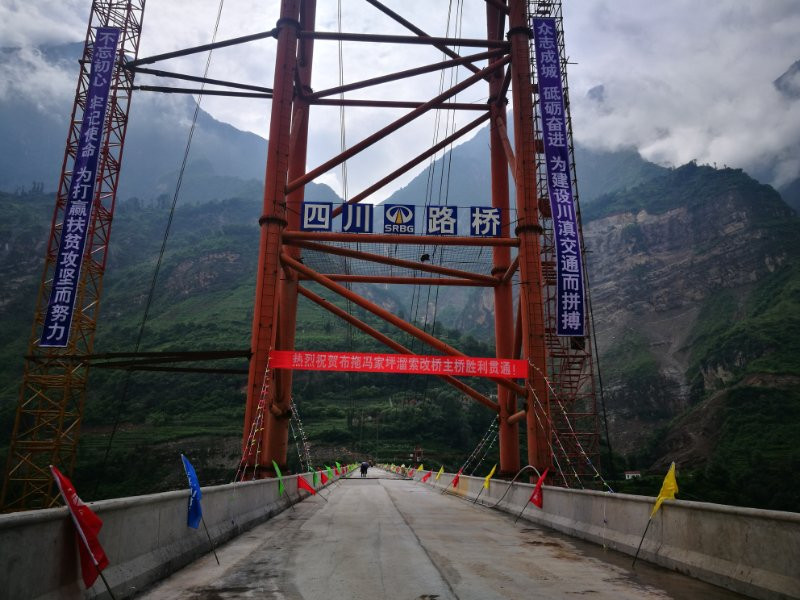 布拖冯家坪村溜索改桥全长385.2米,主孔净跨260米,为四川省第五大跨径拱桥。自2016年1月13日开工建设以来,兴蜀公司溜索改桥指挥部带领各参建单位克服自然条件恶劣、原材料紧缺、运输难、高空作业等多重难题,经过1000多名建设者近900天的艰苦奋战,终于如期实现大桥通车目标。四川和云南岸的引道预计明年建成,届时四川77个“溜索改桥”建设项目将全部完成建设,彻底结束四川的“溜索时代”。