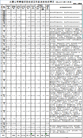 兴蜀公司管理项目投资及形象进度完成情况(截至2018年10月底)