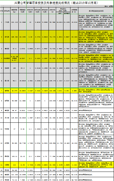 兴蜀公司管理项目投资及形象进度完成情况(截至2019年10月底)