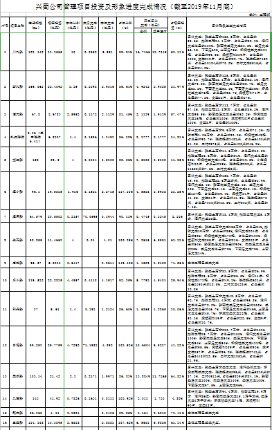 兴蜀公司管理项目投资及形象进度完成情况(截至2019年11月底)