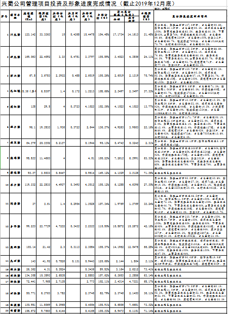兴蜀公司管理项目投资及形象进度完成情况(截至2019年12月底)