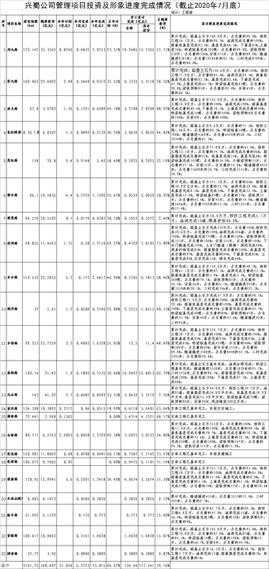 兴蜀公司管理项目投资及形象进度完成情况(截至2020年7月底)