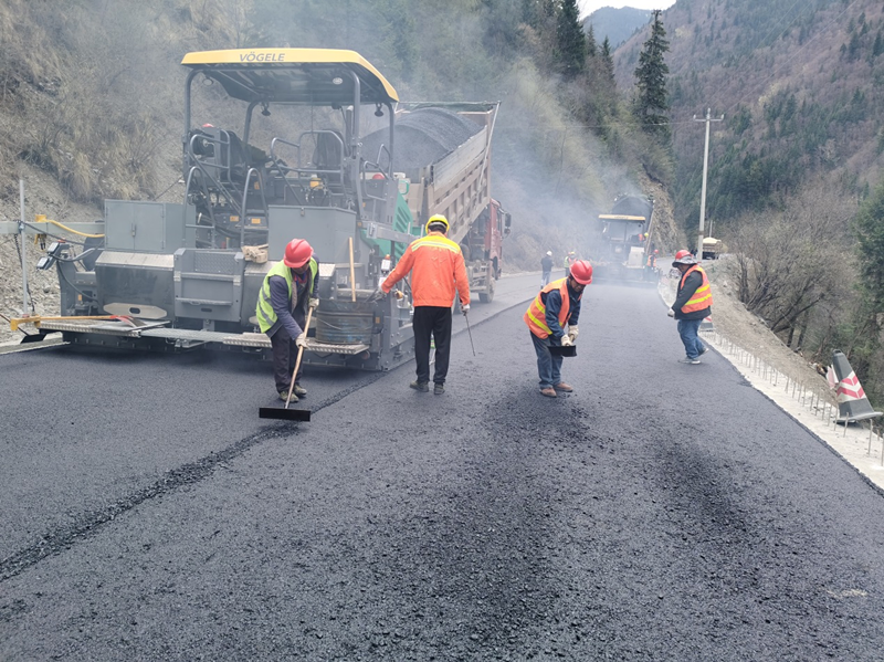 2021年4月7日,兴蜀公司代建的国道347线茂红路四标段路面上面层AC-13沥青砼路面试验段顺利完工,标志着项目路面工程沥青砼上面层施工正式开始。此次路面工程试验段K128+700—K129+000,摊铺长度300米,宽8.5米。AC-13沥青砼上面层试验段的顺利施工将为下一步路面上面层大面积施工提供有力依据和技术指导,并为6月30日完成目标任务奠定坚实基础。