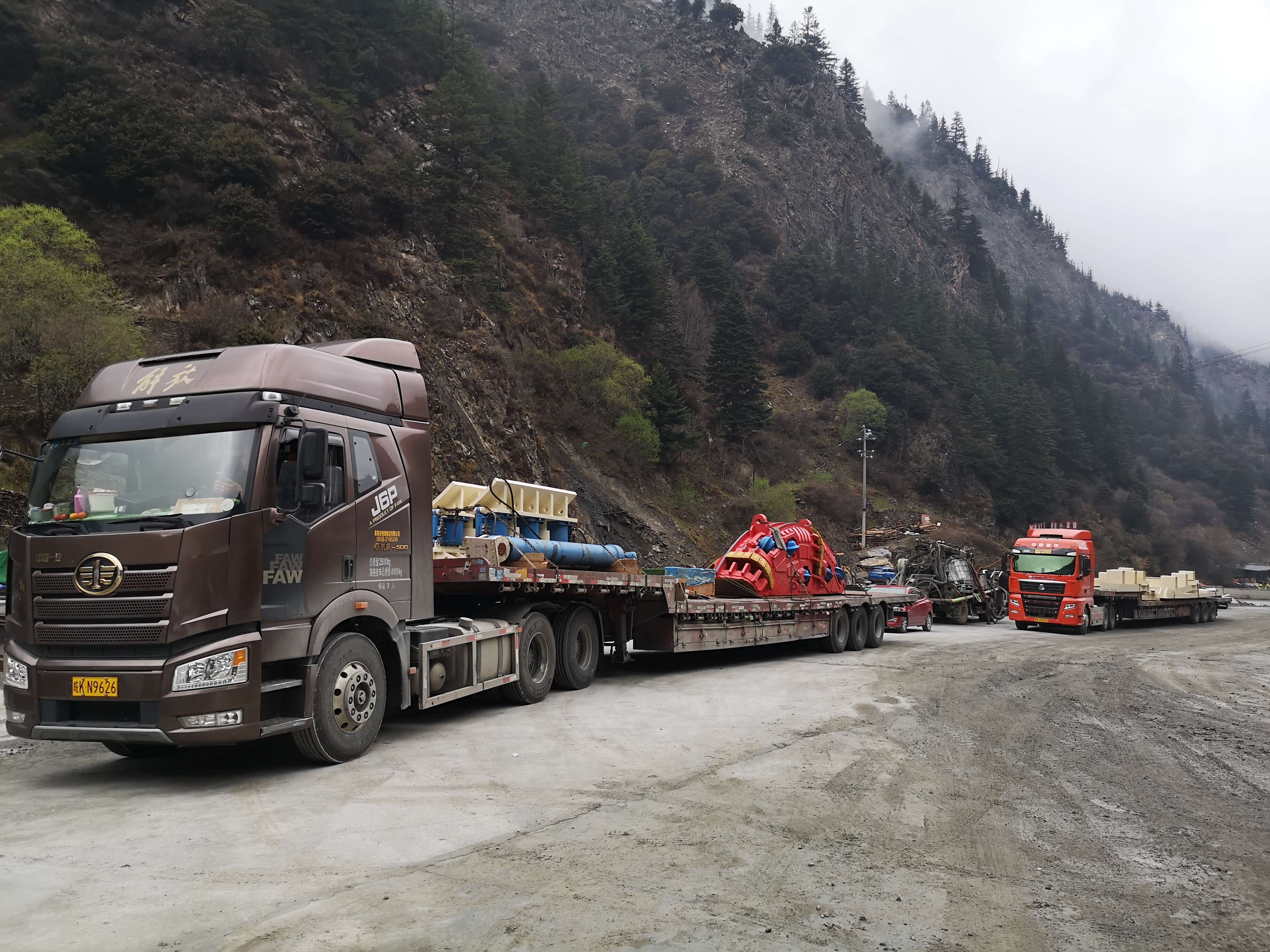 兴蜀公司代建管理的G351夹金山隧道“夹金山号”TBM设备于4月16日下线后,立即开展拆卸、装运工作。为确保顺利到达施工现场,各相关单位建立联络联动机制,前期已开展了路线勘察、地质病害治理、桥梁荷载检测、运输方案论证、超限运输车辆通行证办理、临时交通管制发布、疫情防控等相关工作。此次运输分为大件运输和普通货运,大件运输通行证已全部办理完成,将分三批次开展超限运输,分别为中心块(刀盘)、主驱动(车货总重198T)、主梁一、二和后支撑架。首次运输的普通货物刀盘边块和步进装置已于24日凌晨到达夹金山隧道出口小金端施工现场,其余设备将分期分批运输至工地,计划5月中旬全部运输到场。