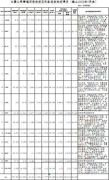 兴蜀公司管理项目投资及形象进度完成情况(截止2022年7月底)