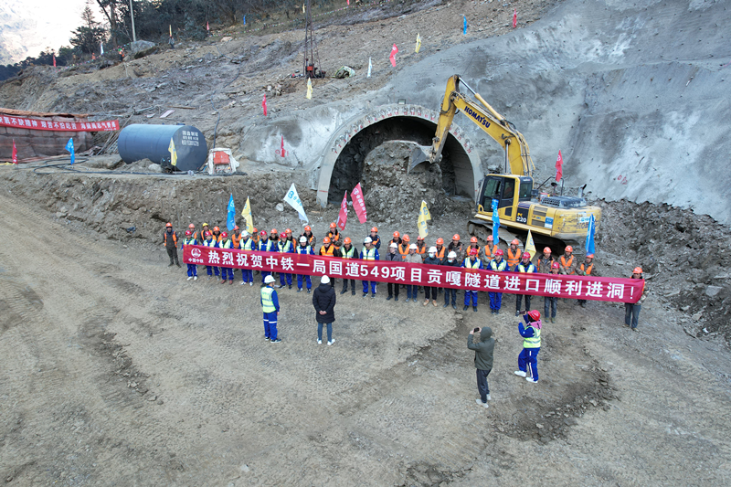 2022年12月4日,兴蜀公司代建国道549线九石路贡嘎隧道进口顺利提前10个月进洞施工。贡嘎隧道是全线控制性工程,主洞长9.961km,平导洞长9.584km,是目前国内最长的单洞对向行车特长隧道。隧道围岩地质条件差,存在岩爆、大变形、突水等安全隐患,施工难度大、安全风险高。