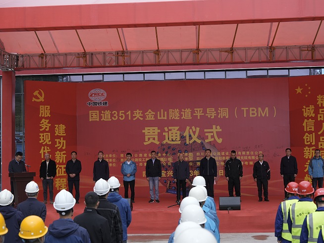 2023年9月25日,兴蜀公司代建国道351夹金山隧道项目传来捷报:历经22个月的鏖战,长达9364米的平行导洞(平导)顺利贯通,比计划工期整整提前了12个月,为全隧贯通奠定了坚实基础。夹金山是红军翻越长征路上的第一座大雪山,夹金山隧道是省委、省政府“我为群众办实事”的重大民生工程。该隧道起于雅安市宝兴县硗碛藏族乡波日沟,止于阿坝州小金县达维镇唐家山,全长9.35公里,项目总投资17.73亿元,建设工期4年,于2021年12月26日开工建设。平导洞采用“TBM+钻爆法”的施工模式,是国内普通国省干线公路建设首次使用TBM施工,其掘进功效是传统钻爆法的3倍以上。夹金山隧道指挥部围绕“五个零”的建设目标,积极推行“项目管理专业化”“施工建设标准化”“安全环保生产常态化”“日常管理精细化”“工程管理信息化”的“五化”管理措施,全力开展TBM技术攻关,TBM单月进尺突破736米、日进尺突破50米,刷新了同期国内普通国省干线TBM施工的最高进尺记录。目前主洞还剩余5852米贯通,平导洞的提前贯通,将新增主洞4个工作面同时施工。下一步,项目指挥部将进一步深化细化“施工图”“责任表”,全力以赴拼经济、搞建设,力争隧道在2025年10月贯通。